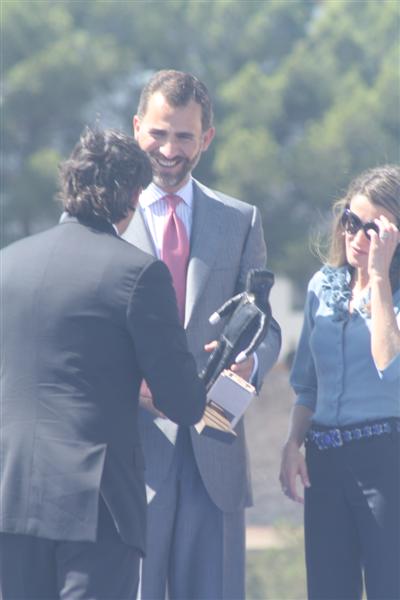 LORENZO AGUSTI LES REGALA LA FIGURA DE LA CORDÀ. El pasado día 5 de septiembre, Paterna recibió la visita de los Príncipes de Asturias, con motivo del centenario del primer vuelo a motor, realizado en Paterna en el año 1909.